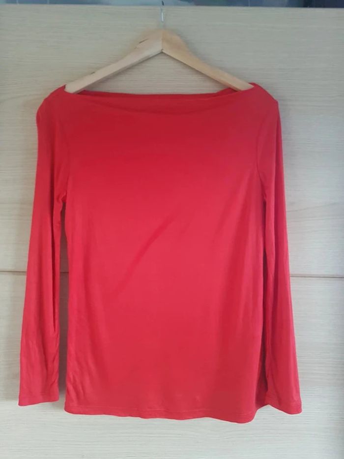 T shirt / blouse rouge col bénitier Carol Taille XS => Pour voir mes vêtements Caroll: #maggy80caroll #maggy80_caroll34 => Pour voir mes hauts en T34: #maggy80haut34