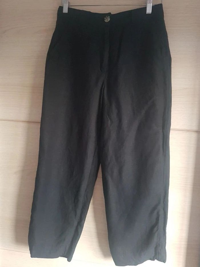 Pantalon noir Caroll Lin et viscose 2 poches latérales et 2 poches arrière Longueur totale: 89 cm Depuis l'entrejambes: 59 cm Neuf jamais porté, juste lavé #maggy80caroll #maggy80pantalon36
