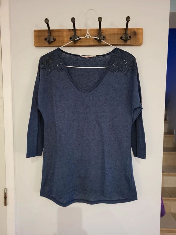 Camaïeu t-shirt marine Taille 36 - photo numéro 3
