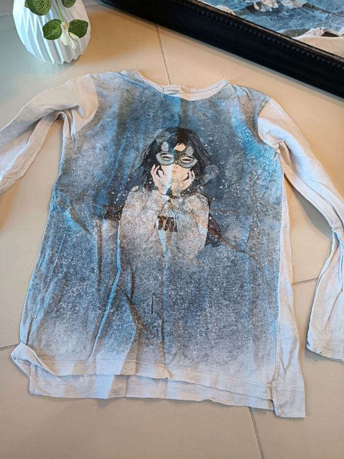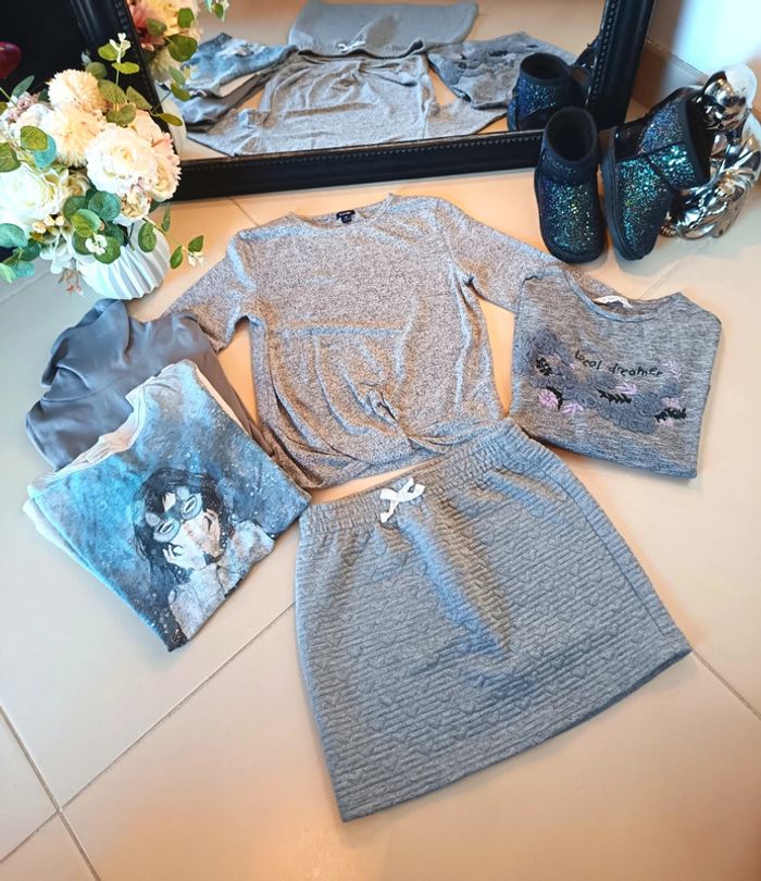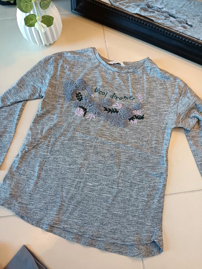 Vêtements d'occasion en très bon état général taille 7/8ans plusieurs marques 1 jupe épaisse 1 pull 3 tee-shirt manches longues Dont 1 offert derrière photo Certains bon état *Vendu sans accessoires* C1
