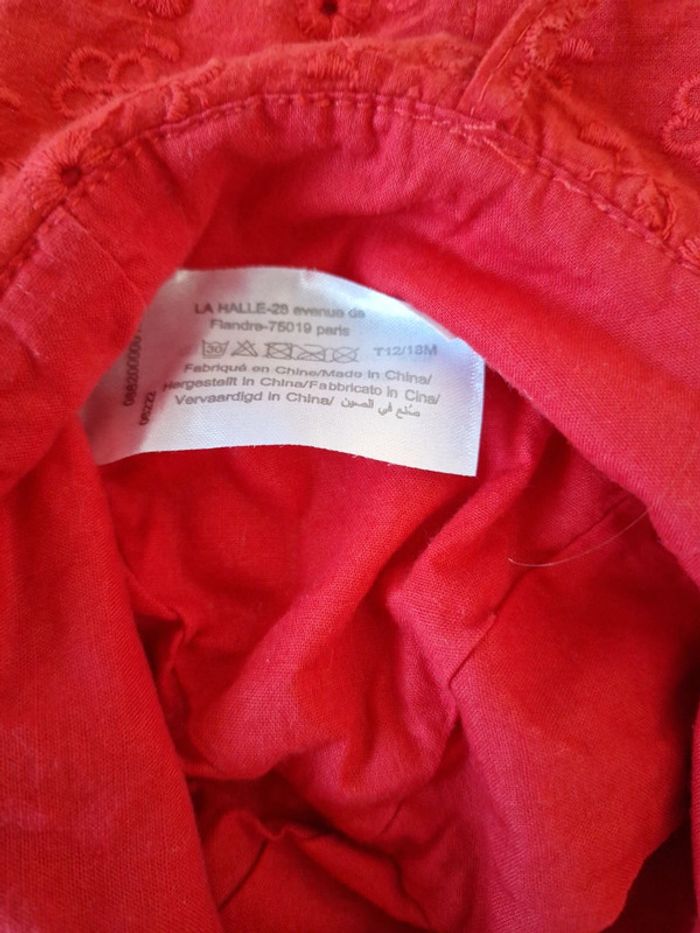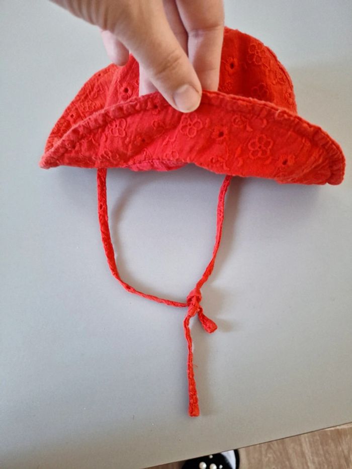 Chapeau la halle rouge avec broderie Taille 12/18 mois Avec cordon