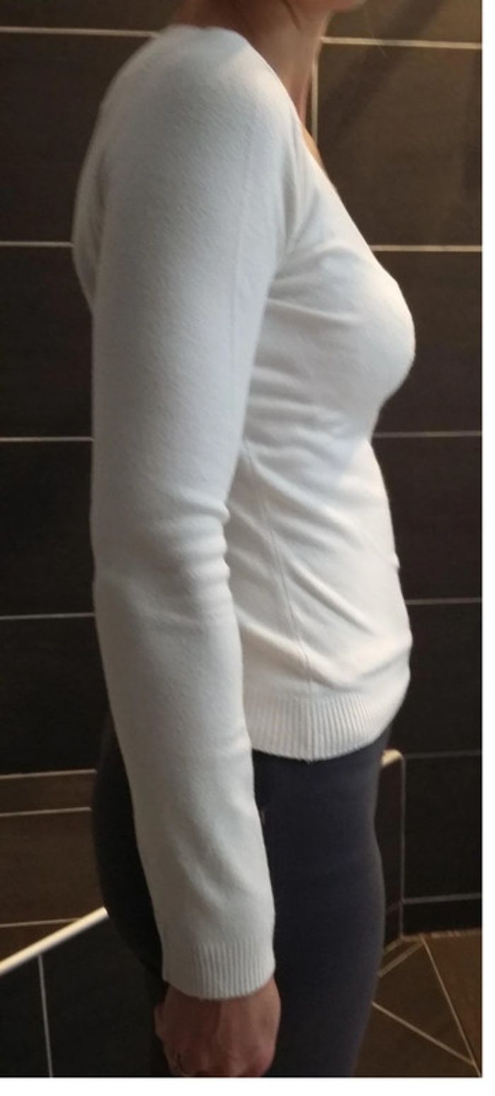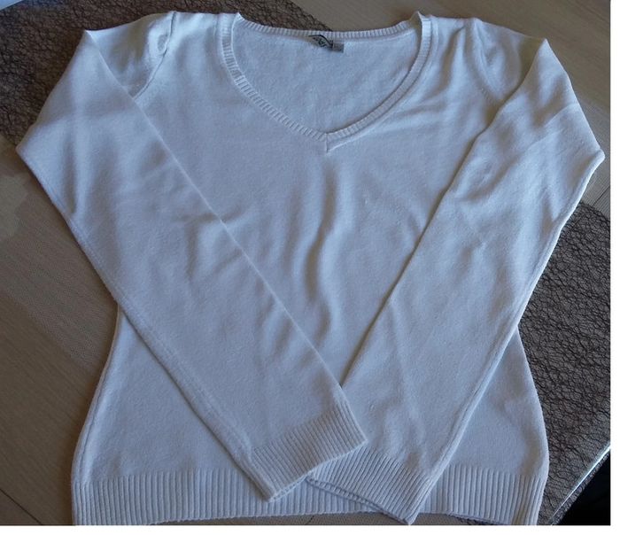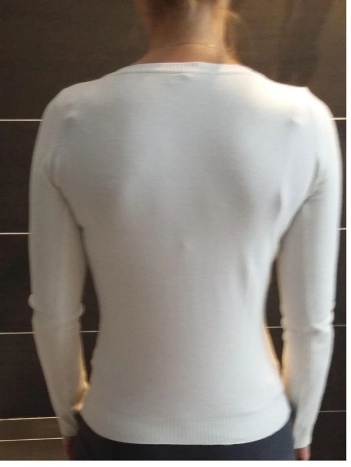 pull col V blanc "spot" 34/36 en bon état (photos portés) - photo numéro 4