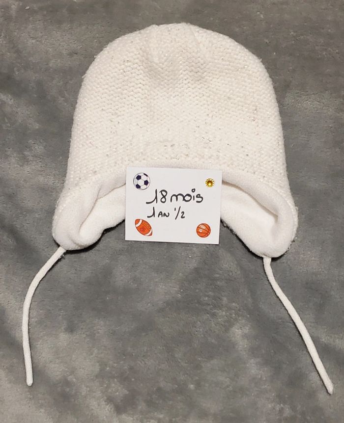 🦄 Bonnet blanc à paillettes en bon état. Il bouloche un tout petit peu.