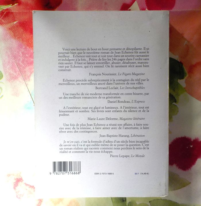 JE M'EN VAIS de Jean ECHENOZ Ed. de MINUIT - photo numéro 5