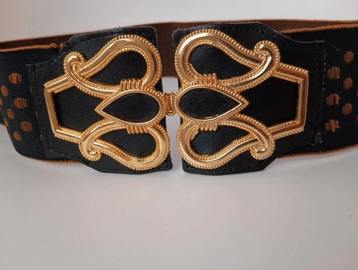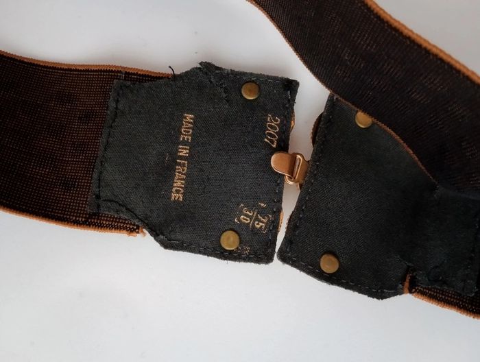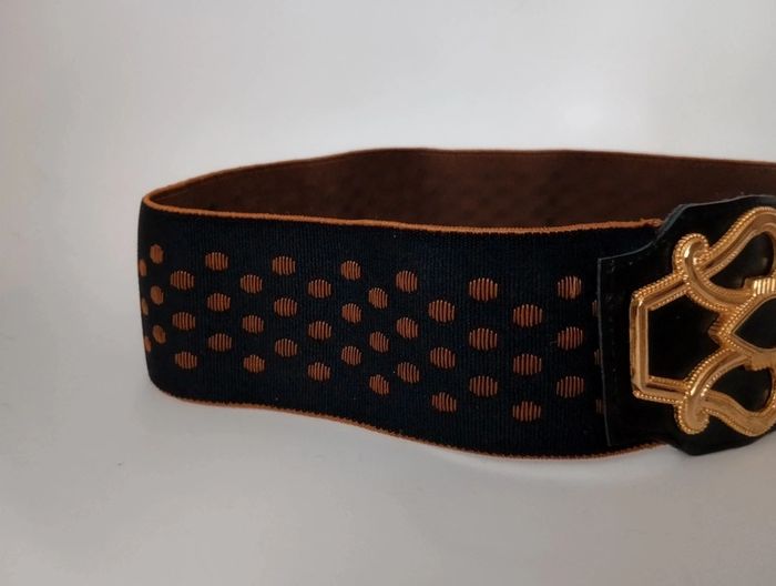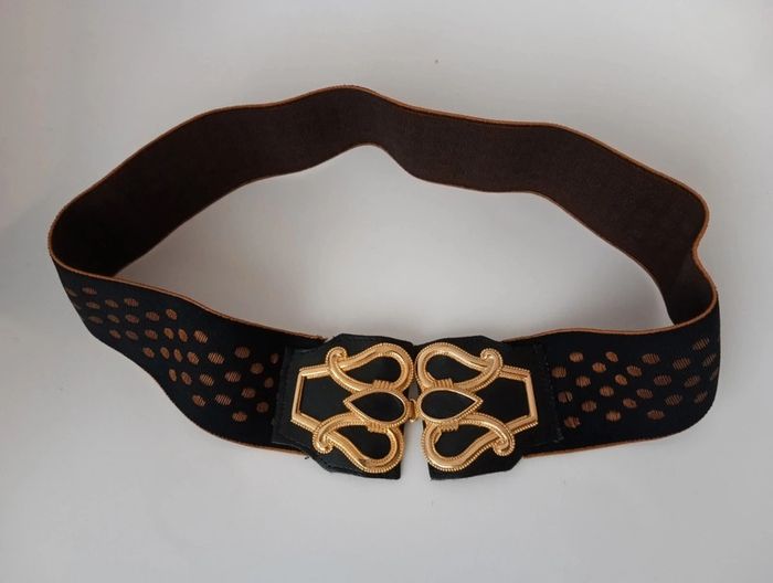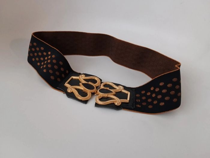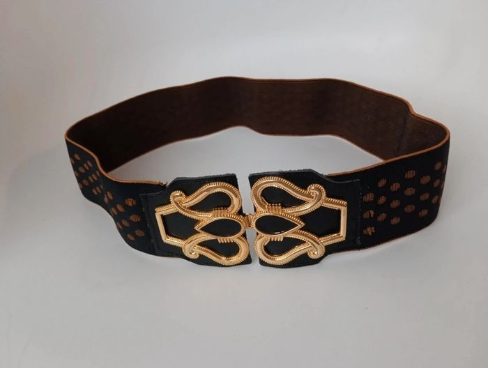 Ceinture élastique vintage Qui sublimera une tenue en marquant la taille. Fabriquée en France boucle dorée à crochets, Extensible de 39 à 56cm Largeur 6 cm