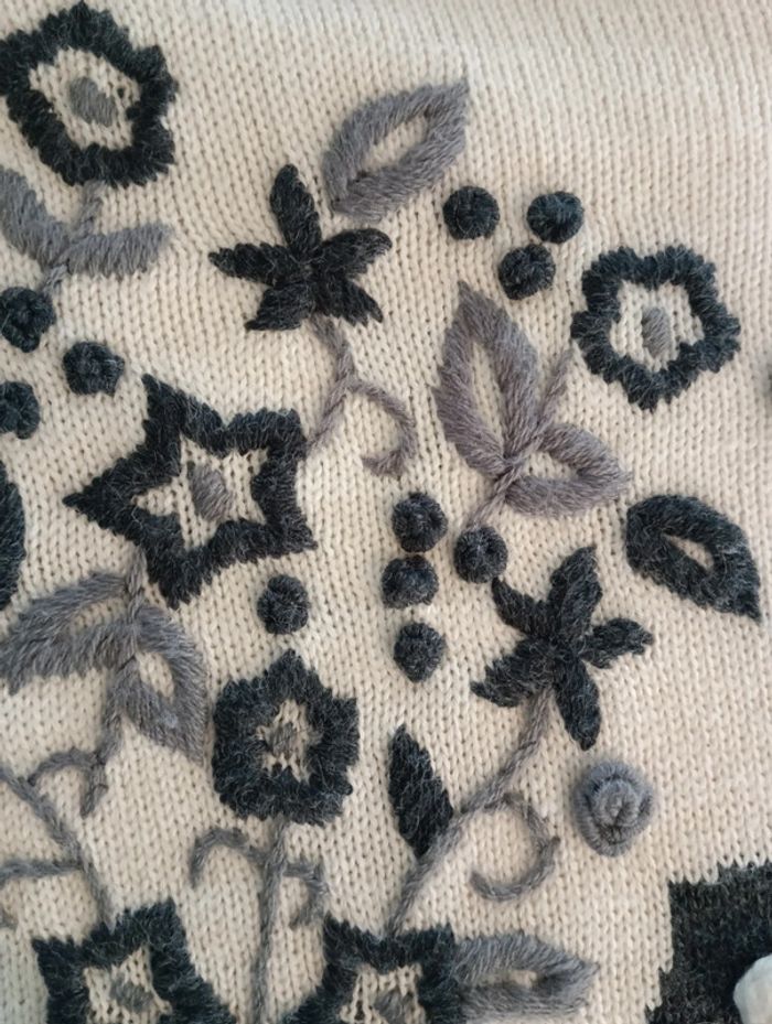 Pull vintage col montant, broderies et pompons - photo numéro 10
