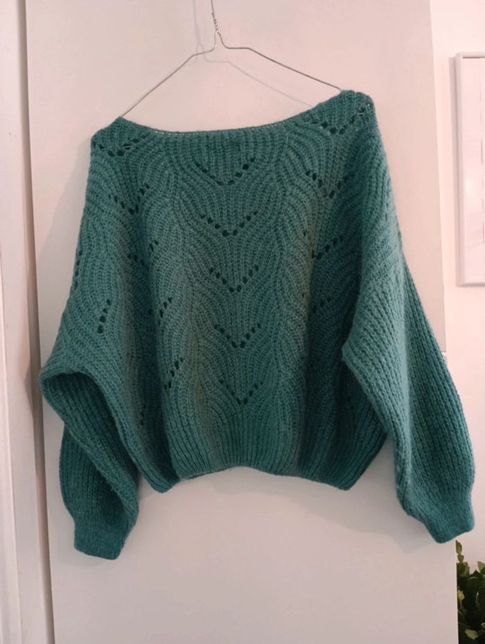 Pull turquoise ajouré Made in Italy taille M - photo numéro 1