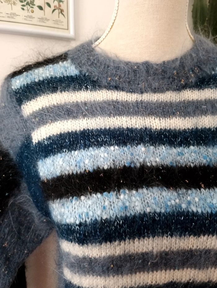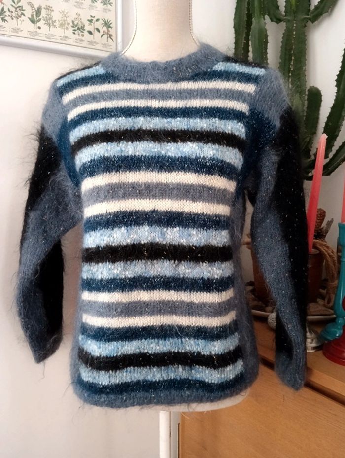 Pull handmade rayures bleues taille 38 - photo numéro 4