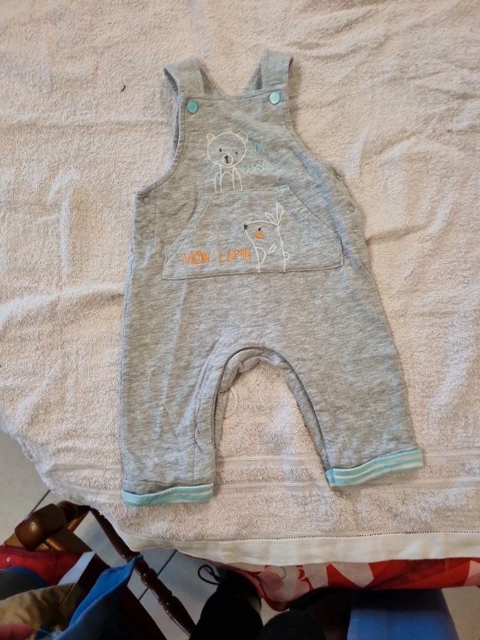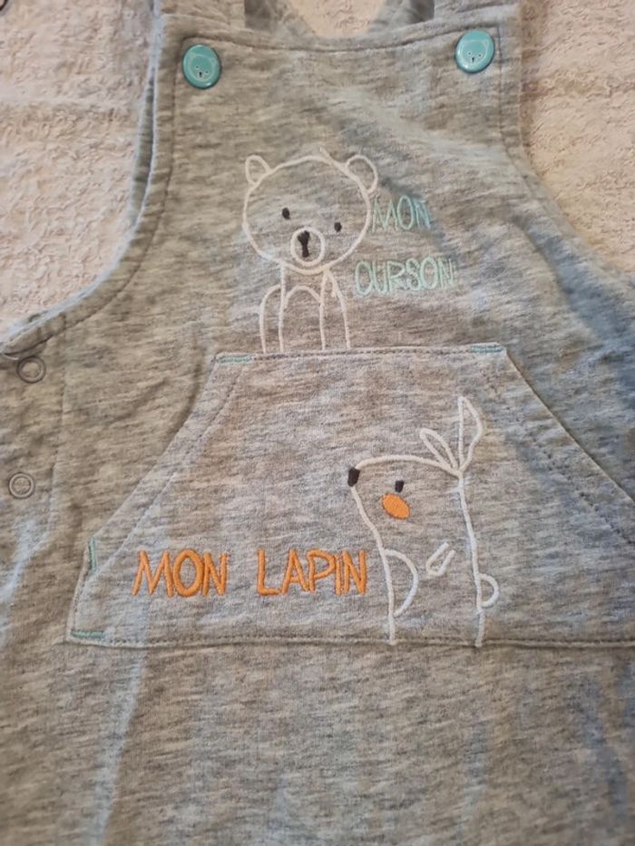 Salopette grise à pressions motif ourson et lapin #totote1986_tailles1_3mois