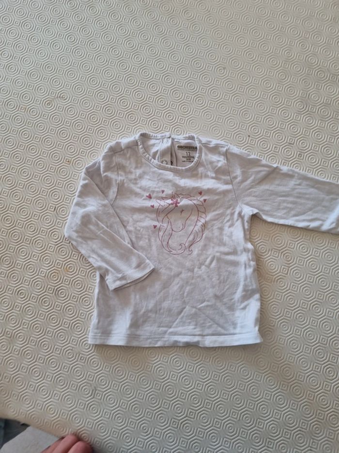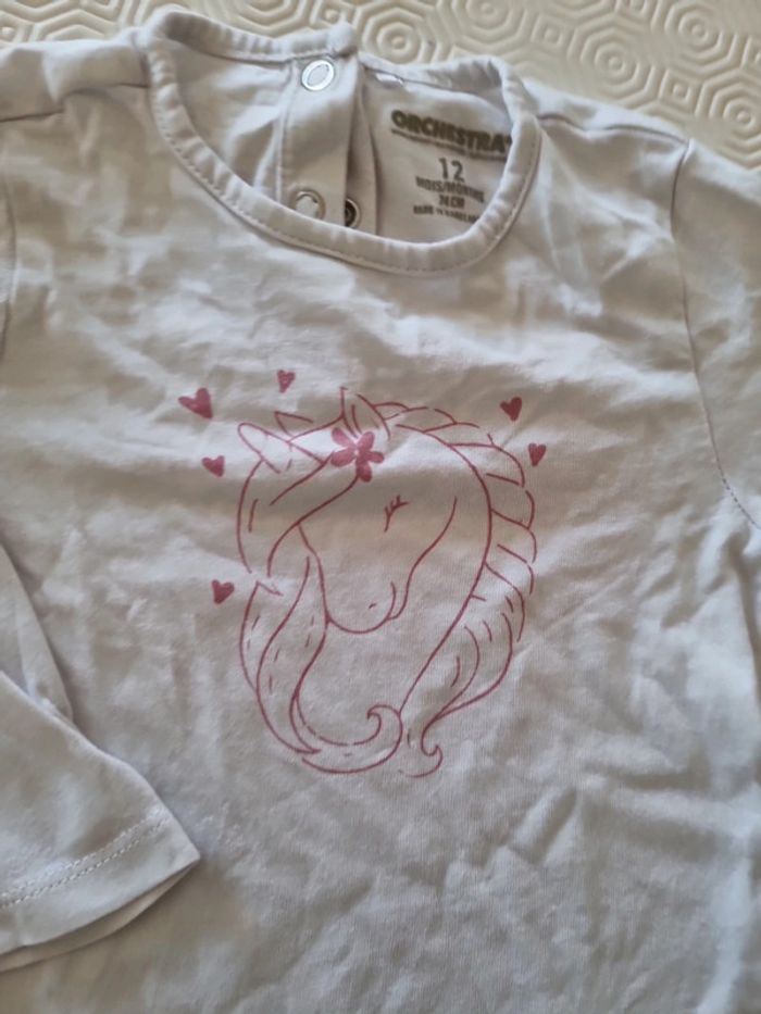 Tee-shirt manches longues blanc motif licorne rose #totote1986_tailles9_12mois