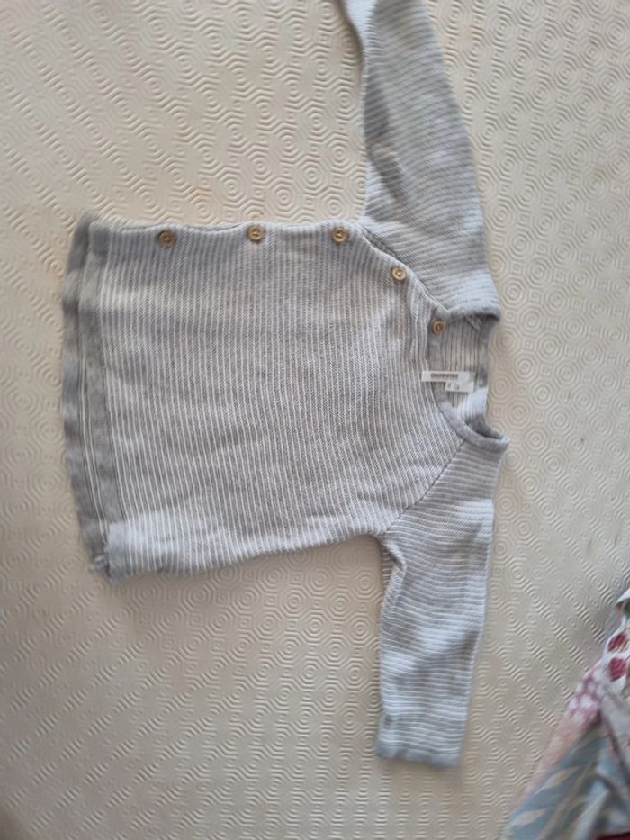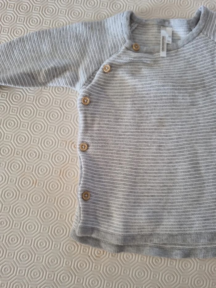 Gilet cache cœur rayé gris et blanc #totote1986_tailles6_9mois