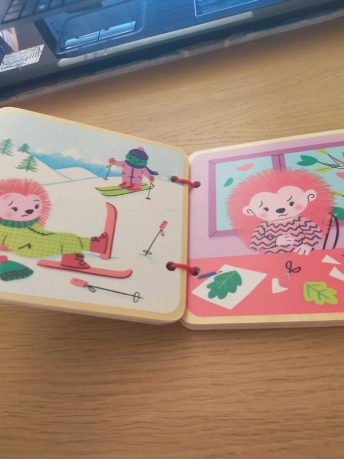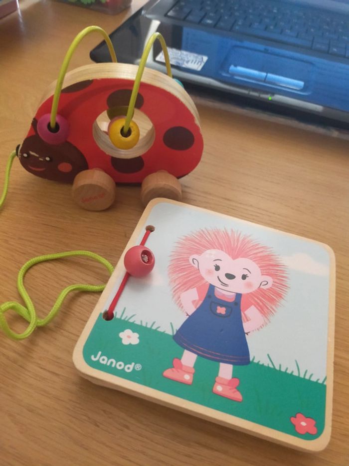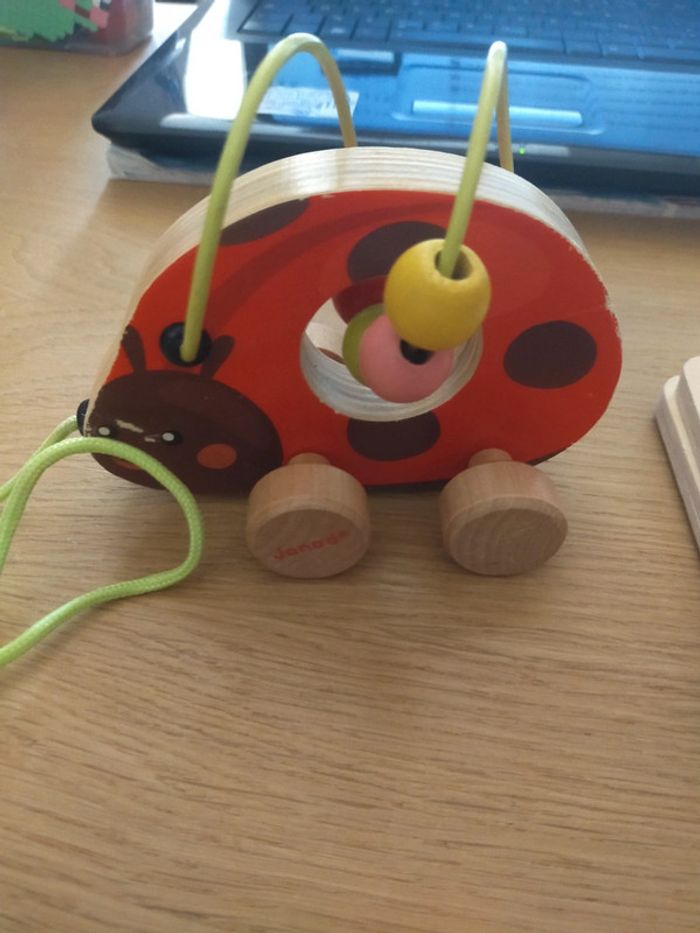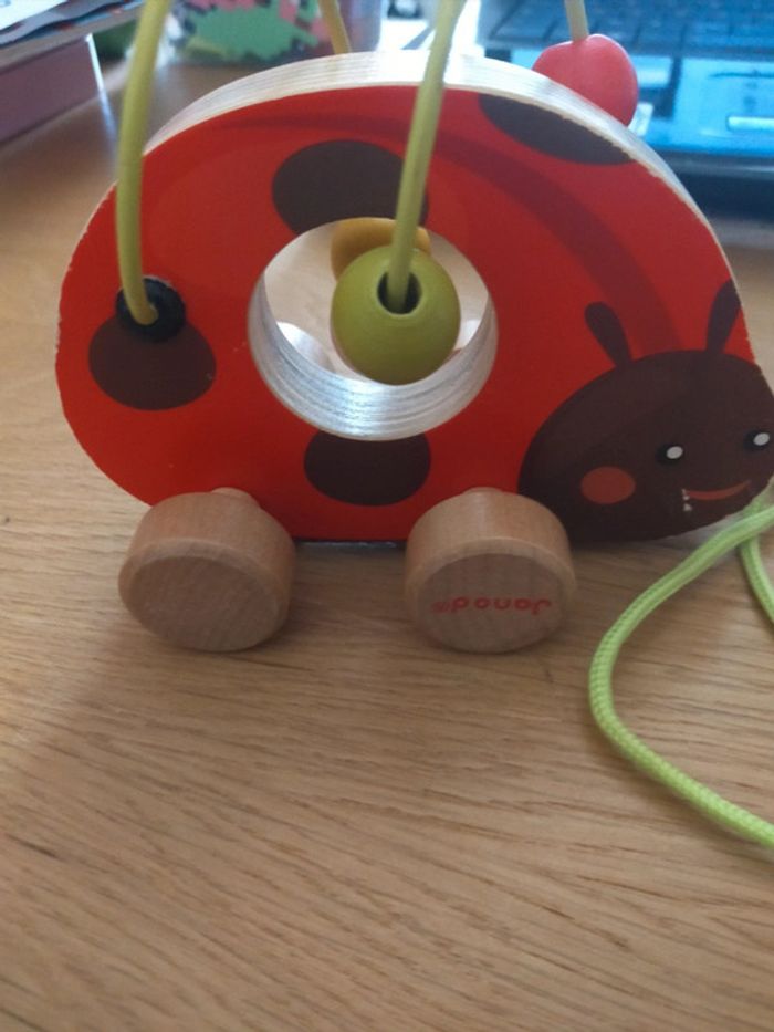 Lot deux jouets en bois La coccinelle 🐞 se tire, elle a des traces d'usure. Le livre est en très bon état
