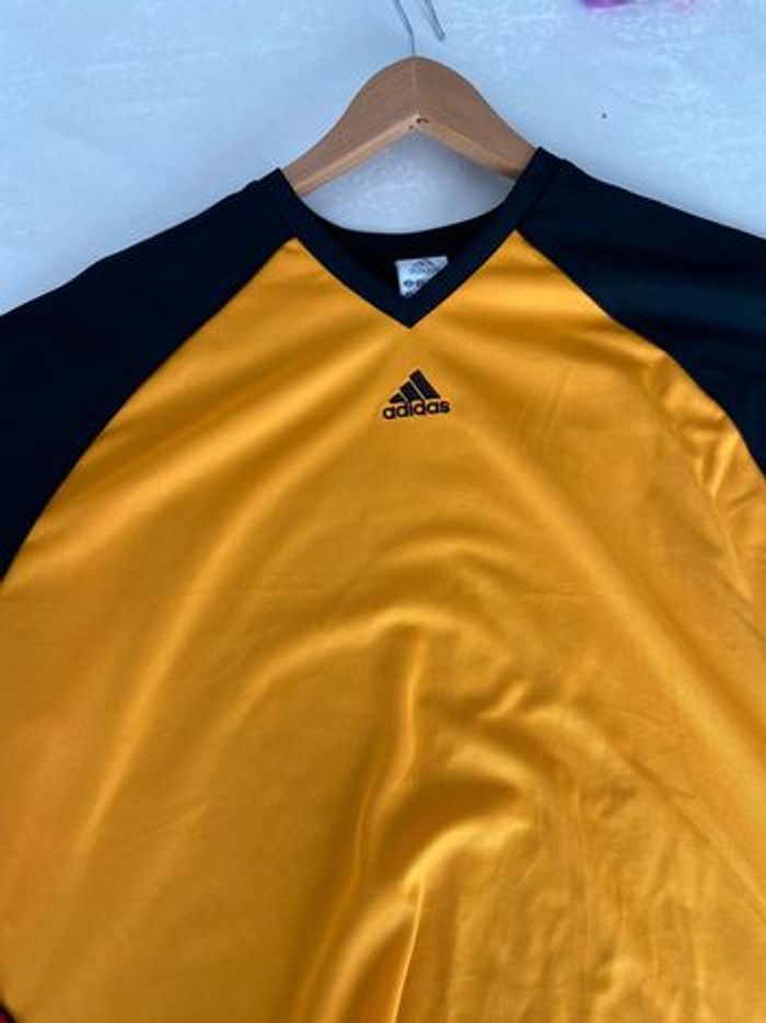 T-shirt adidas modèle Climalite taille L, voir dimensions aussi sur photos . Très bon état. Couleur noire et orange . Matière polyester . C’est un modèle vintage et rare .