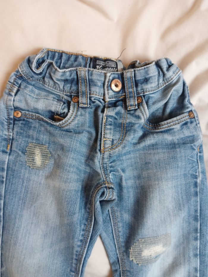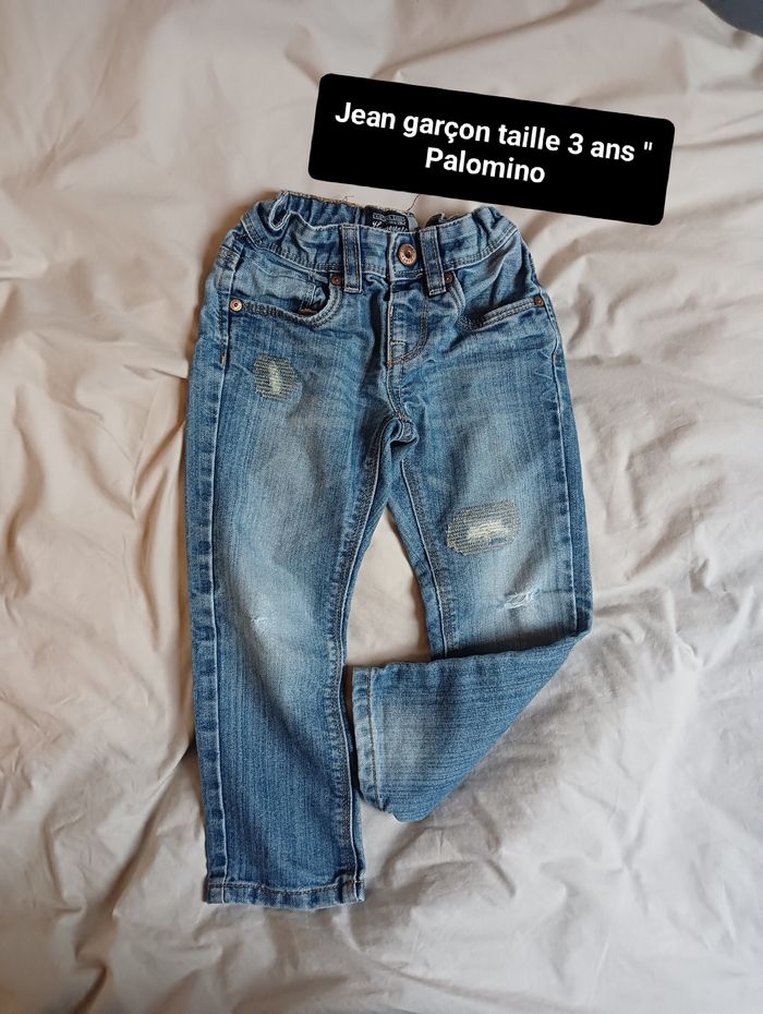 🌀 Jean garçon taille 98cm (3ans) Jean déchiré effet " usé". Marque " Palomino" En bon état. 🔸 Ajustable à la taille grâce aux élastiques intérieurs. ▪️73% coton - 27% polyester