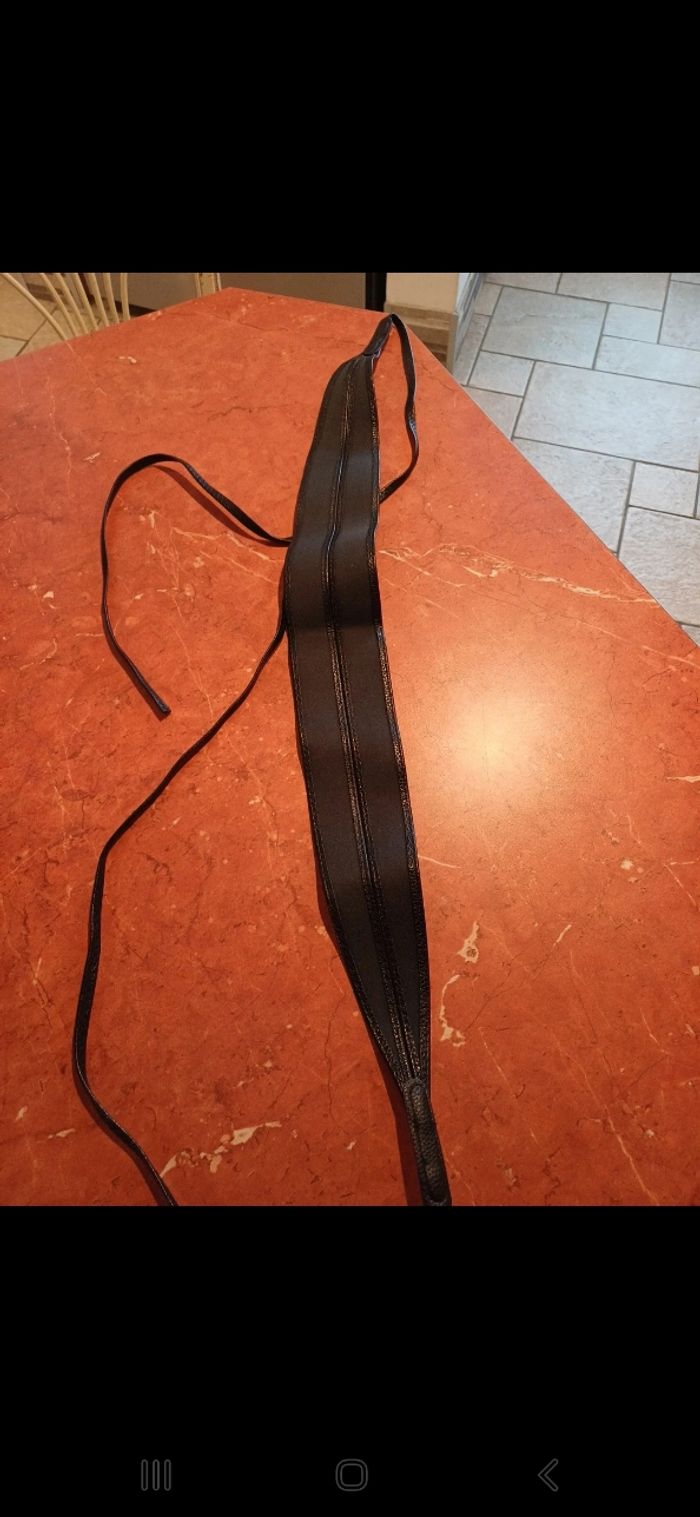 Ceinture avec grande partie qui mesure 87cm et liens 95cm de chaque côté