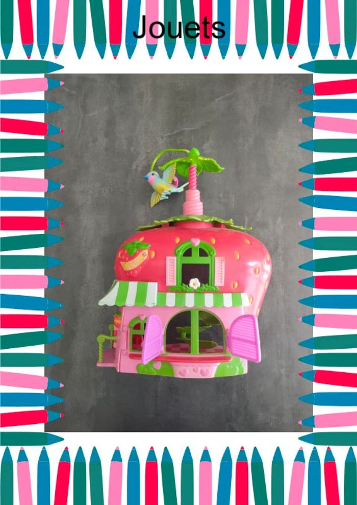 maison charlotte aux fraise, l'escalier s'ouvre et se ferme l'oiseau monte et descend en tournant pour un personnage d'environ 8.5 cm #tinycats_jouet