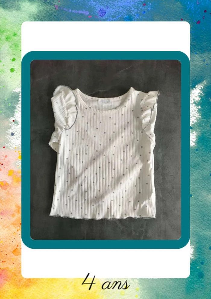 blanc + petits points gris + volants aux épaules primark #tinycats_fille4ans