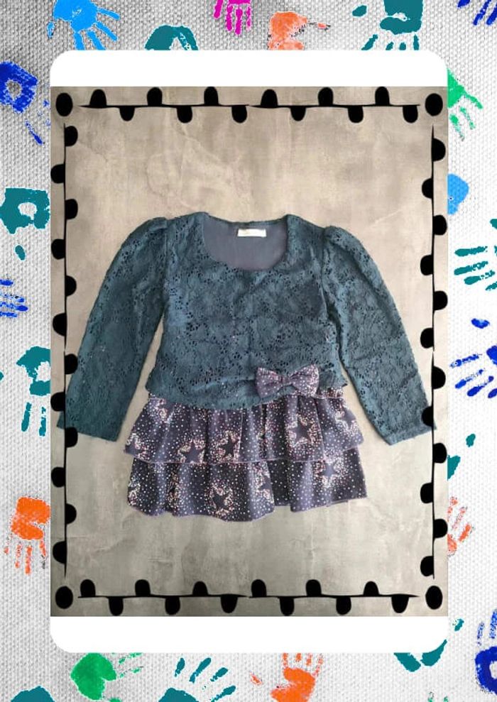Robe bleu super mignonne avec haut en dentelle / étoile avec nœud #tinycats_fille18-24Mois #tinycats_fille23Mois #tinycats_fille24Mois