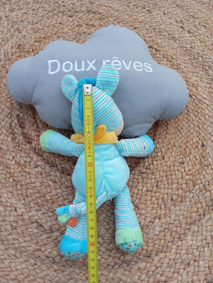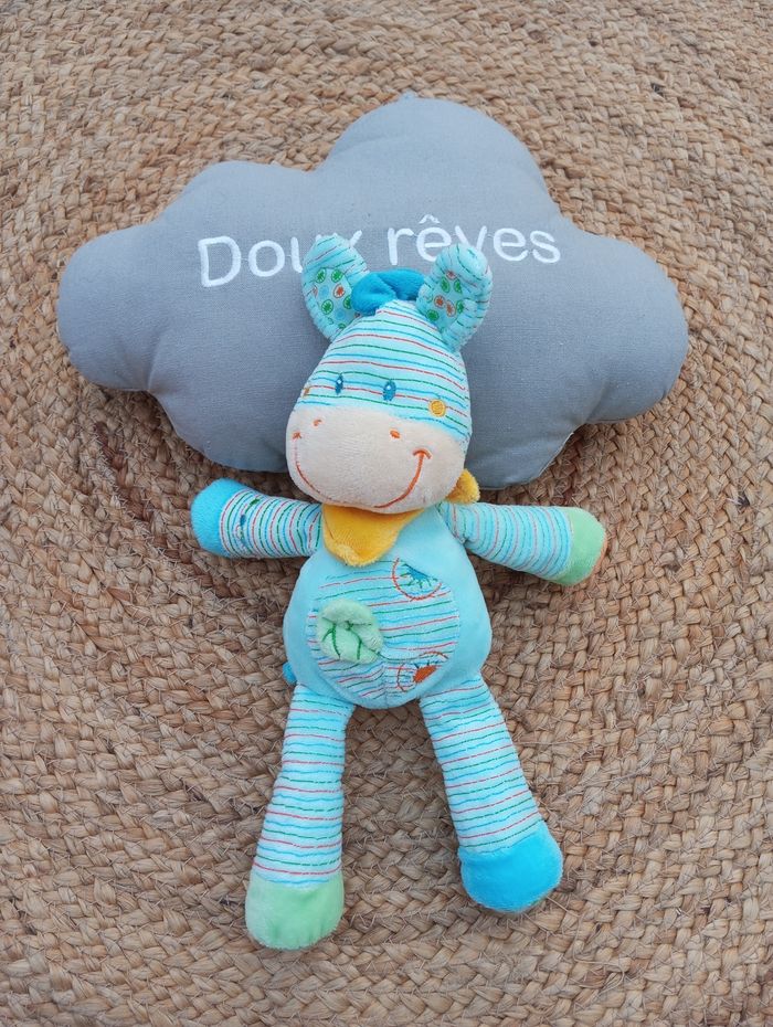 #DCR_nicotoy #DCR_zebre Nicotoy Doudou zèbre Bleu jaune Rayures Broderies Bandana C006