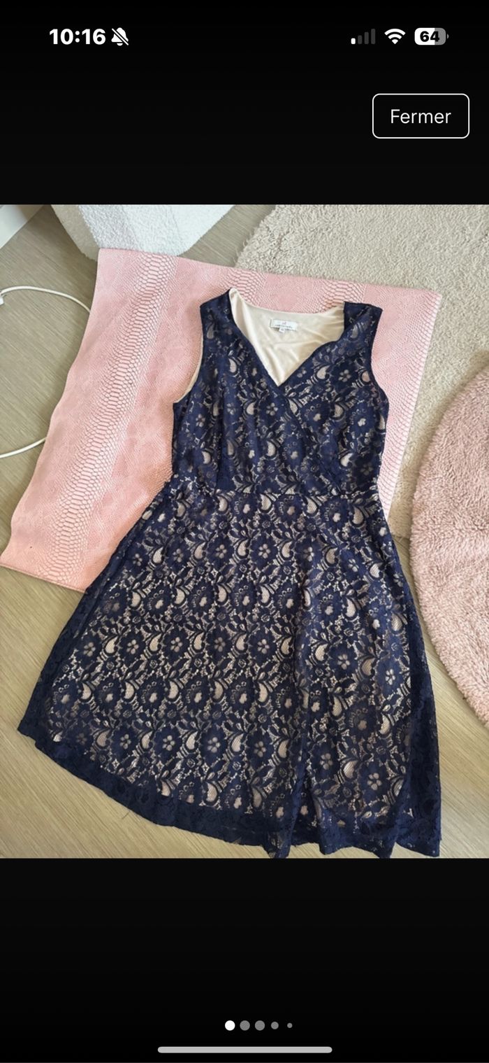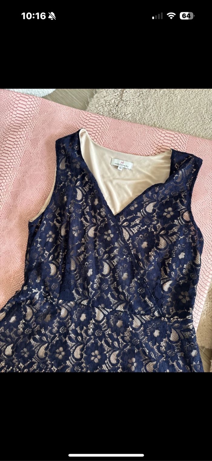 Jolie robe Jacqueline riu dentelle bleu doublure rose saumon taille 40 Jacqueline riu