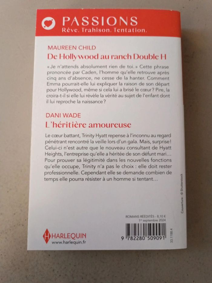 Harlequin 2 histoires PASSIONS : de Hollywood au ranch Double H et l'héritière amoureuse. Voici le lien pour voir tous mes livres : #romain75015_Livres. Envoi rapide et soigné bien protégé pour le transport. N'hésitez pas à faire un lot pour avoir des réductions et mutualiser les frais de port.
