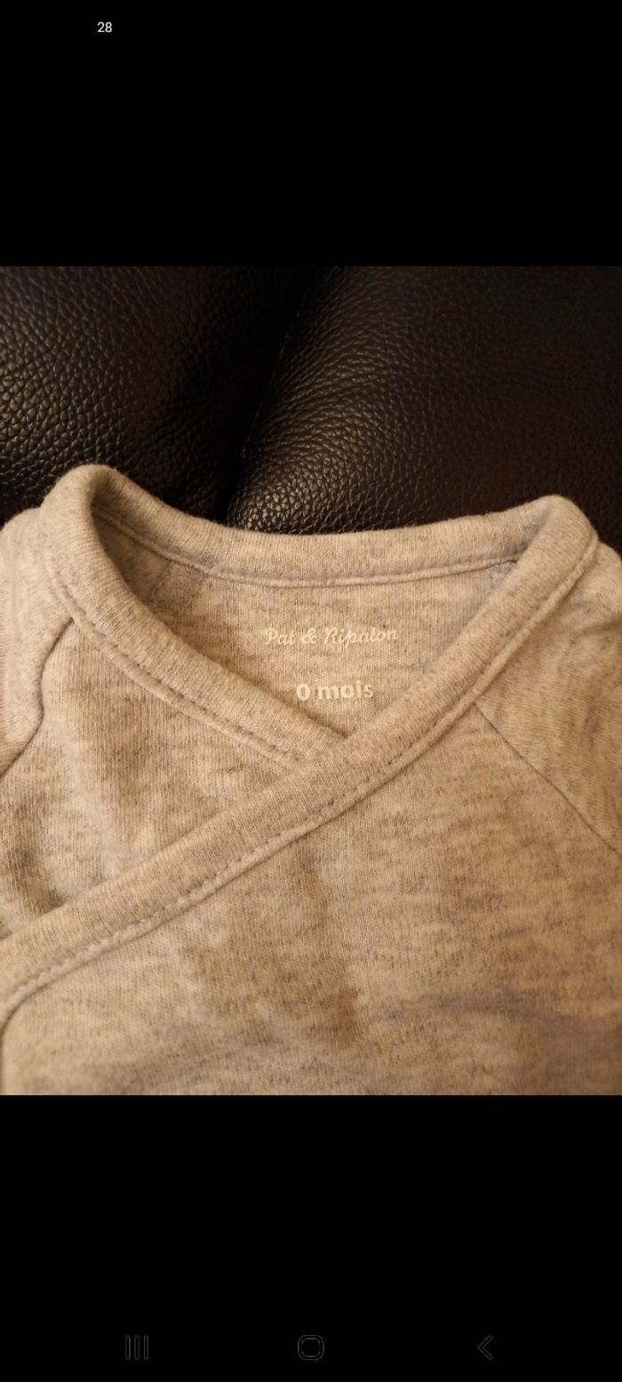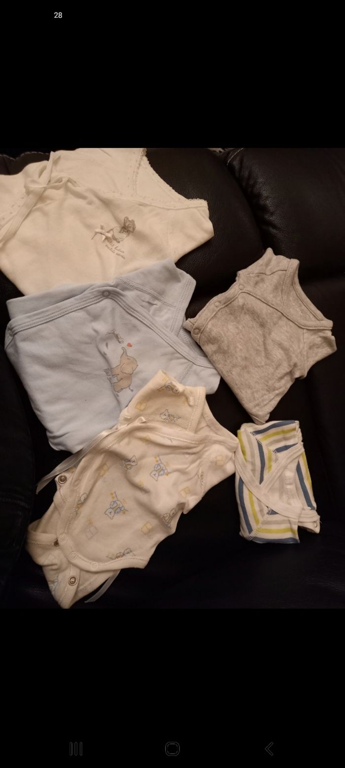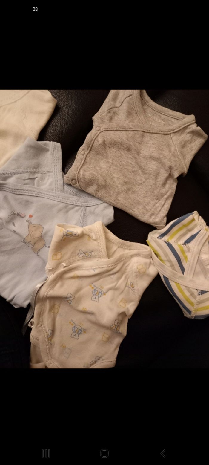 Lot de 5 bodies manches longues mixte 4 de taille 0 mois et 1 de taille 1 mois Très bon état Plusieurs marques : petit bateau, pat et ripatons et in Extenso