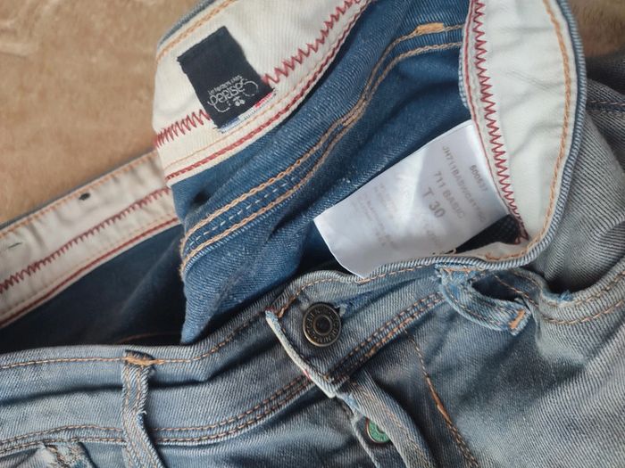 Modèle 711 délavé coupe slim - Étiquette Le Temps des Cerises  en cuir brodée à la ceinture Taille 30 us