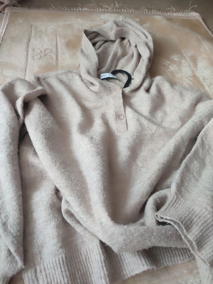 Pull beige à capuche en maille souple taille XL - photo numéro 3