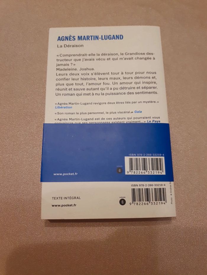 Roman Excellent La Déraison De Agnès Martin-Lugang Excellent état