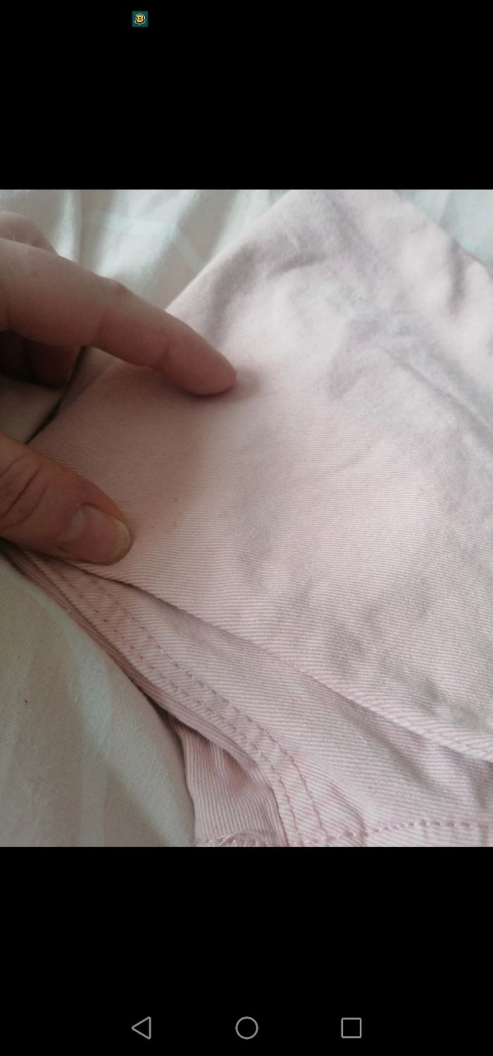 Porté 1 fois il est en très bon état. 2 micro taches sur l'arrière d'une cuisse voir photo où je montre avec mes doigts (c'est vraiment très peu visible)
