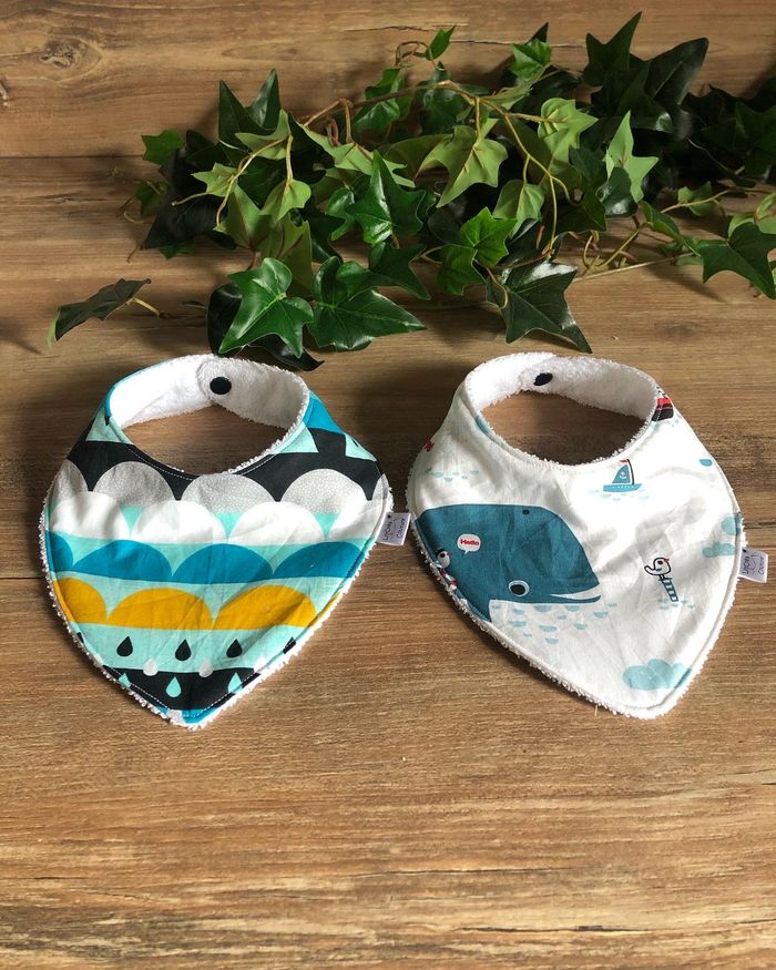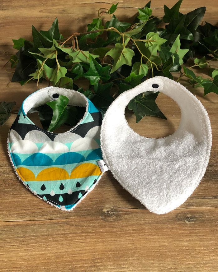 Avec ces bandanas bavoirs, fini les tee-shirt mouillés ! En plus d’être pratiques, ils donneront un style coloré et sympathique à votre bout d’chou ! Tissu coton imprimé et tissu éponge de l’autre côté, certifiés Oeko Tex. Coloris au choix sur demande. Création sur mesure.