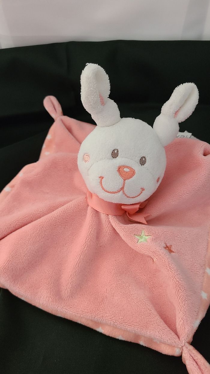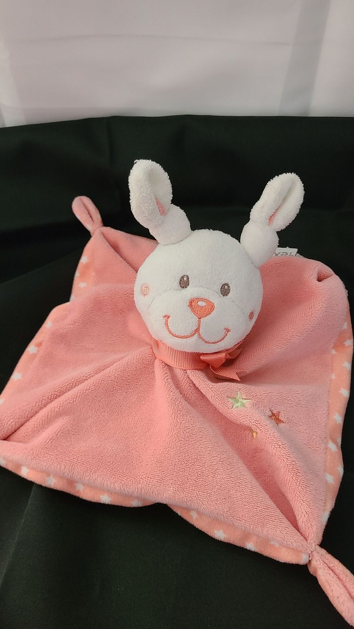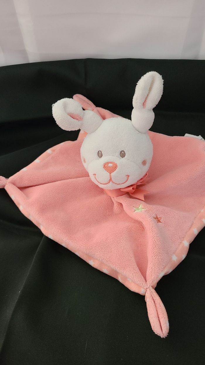 Doudou plat lapin TEX étoile rose saumon carré - photo numéro 1