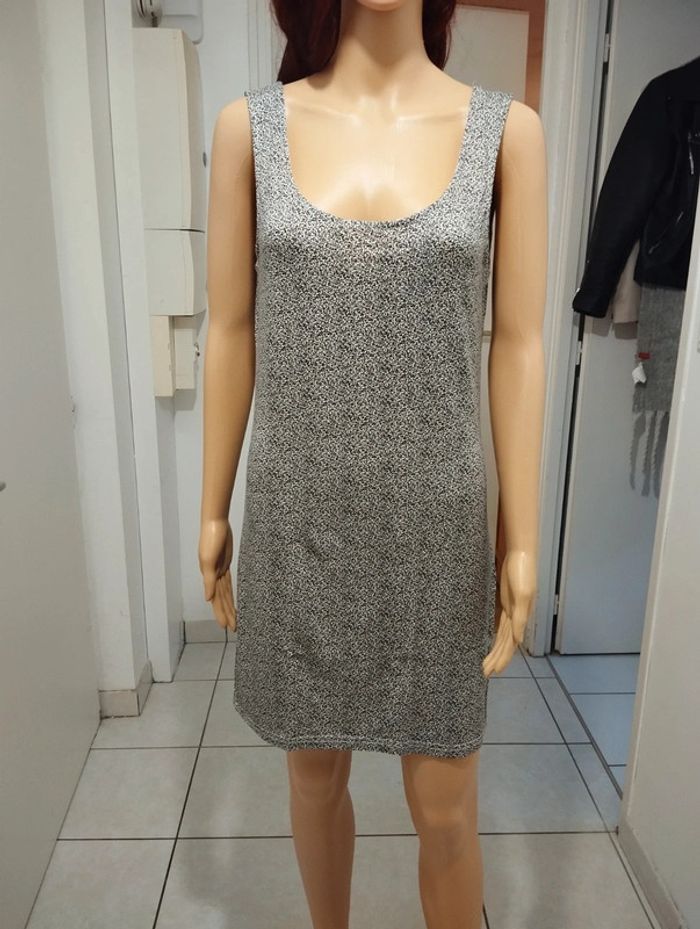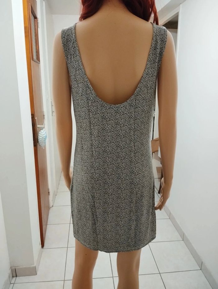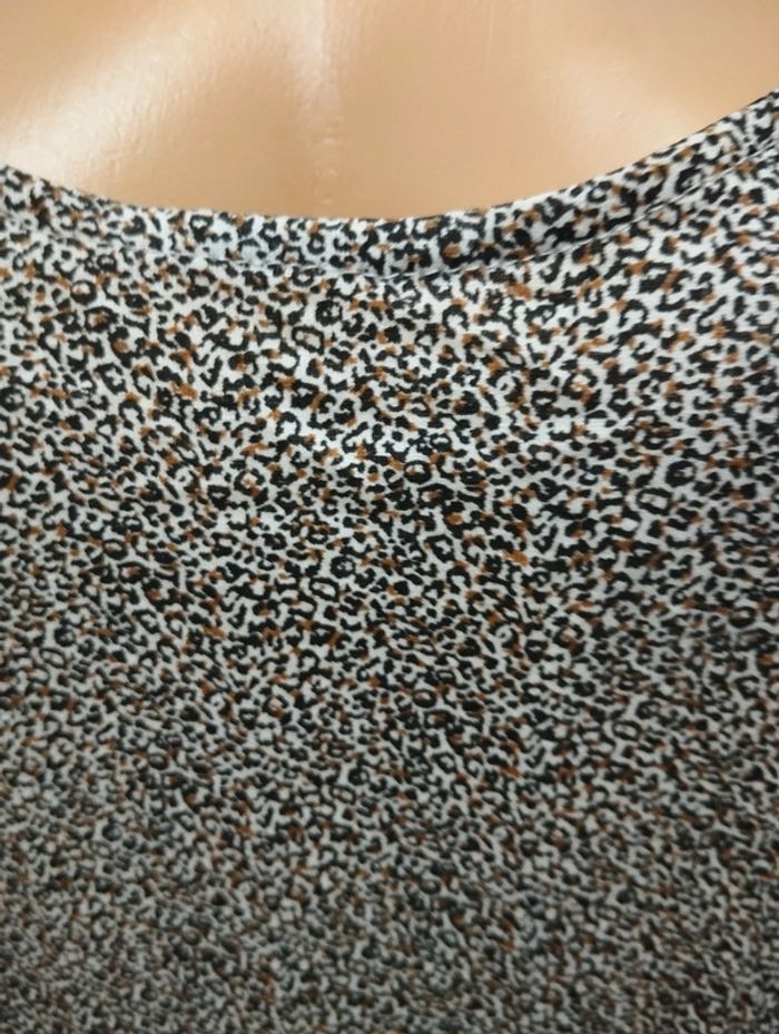 ℹ️ Robe de couleur blanche avec de multiple petites tâches léopard noire et marron. Matière légère et extensible. Légèrement cintrée et près du corps. Le décolleté arrière descend milieu du dos. 🧵 96% viscose 4% élasthanne 📏 Aisselle à aisselle: 47cm Largeur taille: 43cm Longueur totale: 90cm K