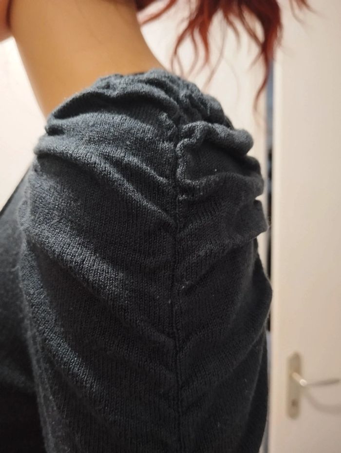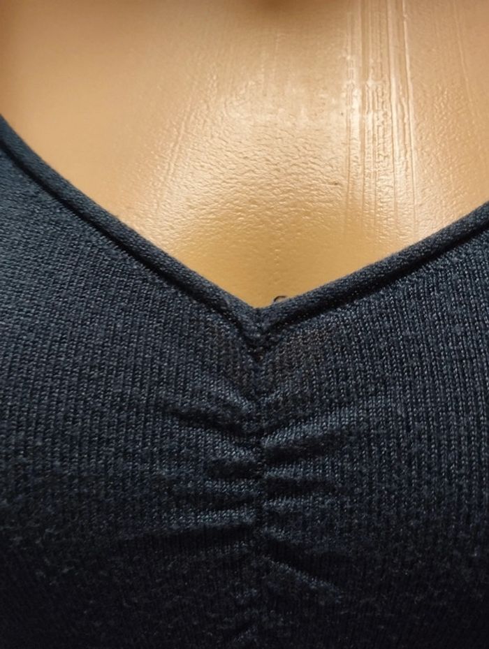 ℹ️ Tee-shirt de couleur marine. Matière très extensible, chaude et agréable à porter. Les manches et le décolleté sont plissées. 🧵 86% acrylique 14% polyamide 📏 Largeur épaules: 34cm Aisselle à aisselle: 39cm Largeur taille: 35cm Longueur totale: 57cm T2