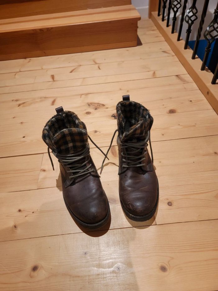 Très jolies bottines fourrées en cuir marron taille 41 (taille grand plutôt 42). Très bon état général.