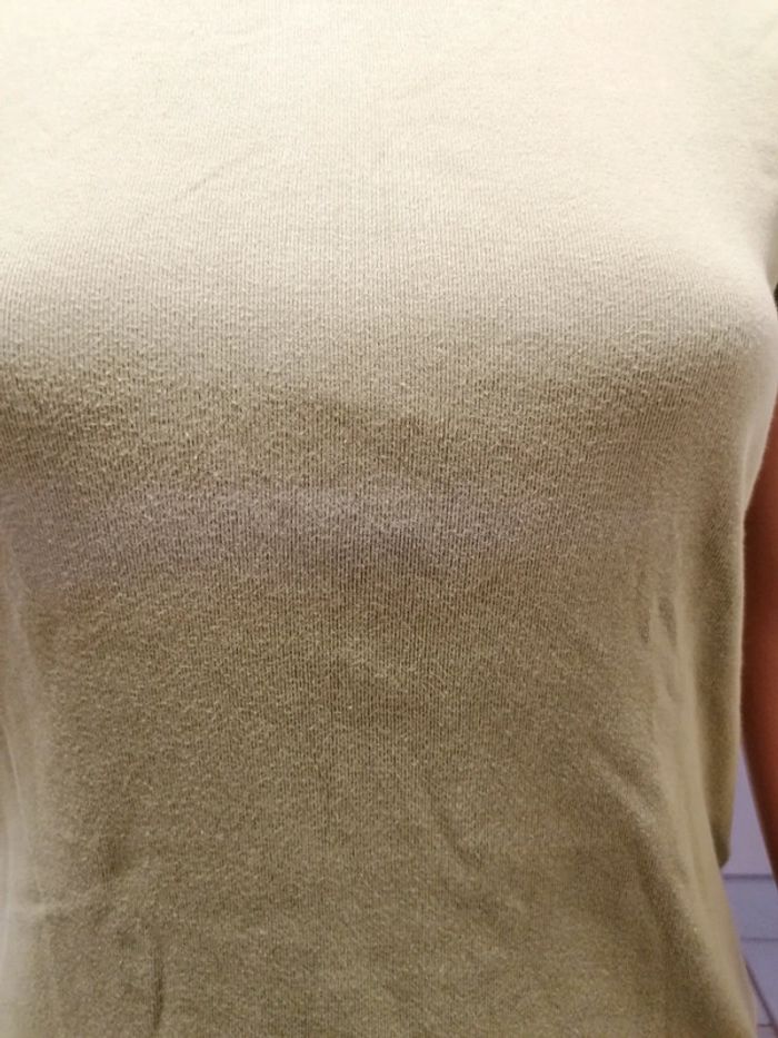 ℹ️ Tee-shirt de couleur vert/kaki. Tissu plutôt épais et extensible. Taille 38/40. Légère décoloration à l'avant du au séchage. 🧵 100% coton 📏 Largeur épaules: 38cm Aisselle à aisselle: 44cm Largeur taille: 40cm Longueur: 58cm R1