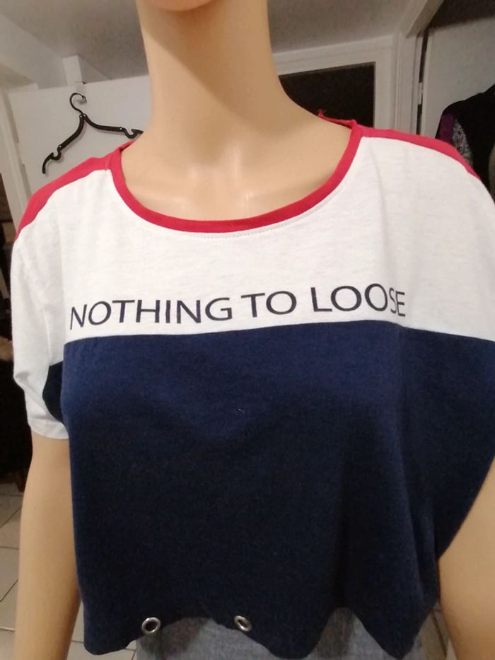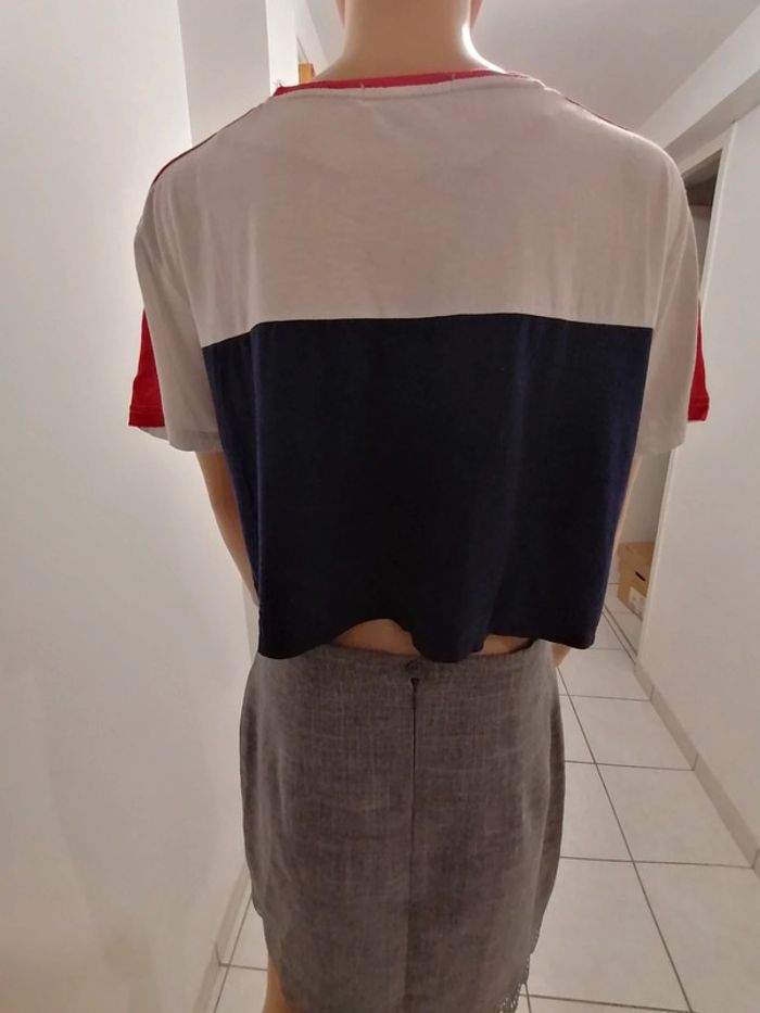 ℹ️ Tee-shirt croc top tricolore oversize. Il manque le lacet à la taille, possibilité d'en mettre un. Agréable à porter. 🧵 50% coton 50% modal 📏 Largeur épaules: 45cm Aisselle à aisselle: 60cm Largeur taille: 58cm Longueur: 40cm Z