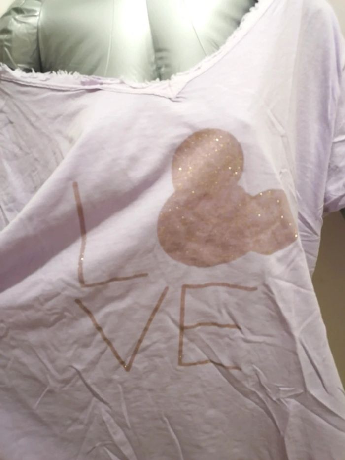 Tee-shirt de couleur parme avec une inscription love à l'avant. Oversize. W