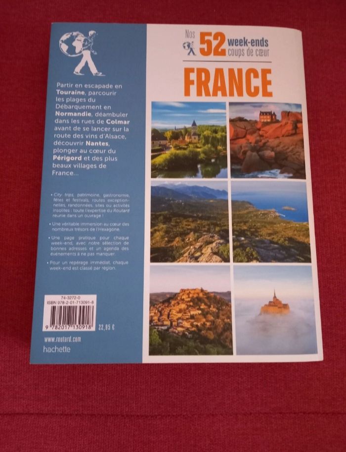 Très beau livre avec de très belle illustrations Guide des plus belles villes coup cœur à visiter Ou manger et dormir. Livre le Routard nos 52 week-end coup cœur 💔 396 pages de photos et d'indication pour passer de bon week-end. Poids 980gr. Très bonne état. Prix d'achat 22€ 95. Envoie soigné avec mondial relay ou Chronopost N'hésitez pas à regarder mes autres offres. Merci pour votre visite 😉