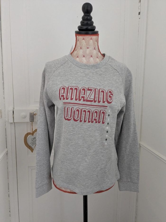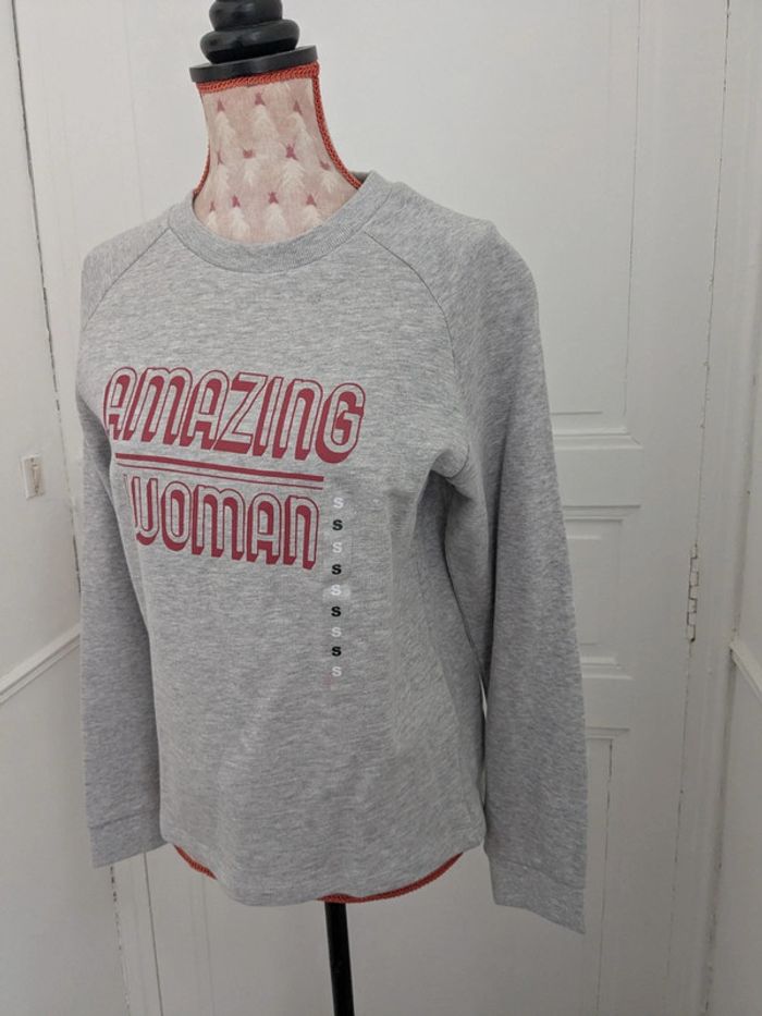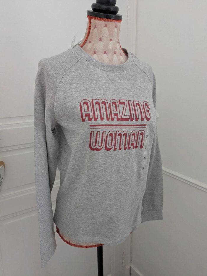 Pull gris texte Amazon woman rouge - photo numéro 6