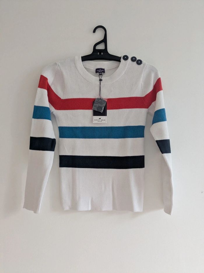 Pull rayé blanc bleu et rouge sergent major 10 ans