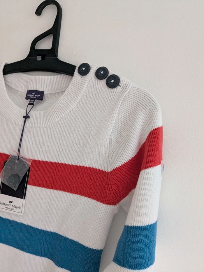 Pull rayé blanc bleu et rouge sergent major 10 ans - photo numéro 1