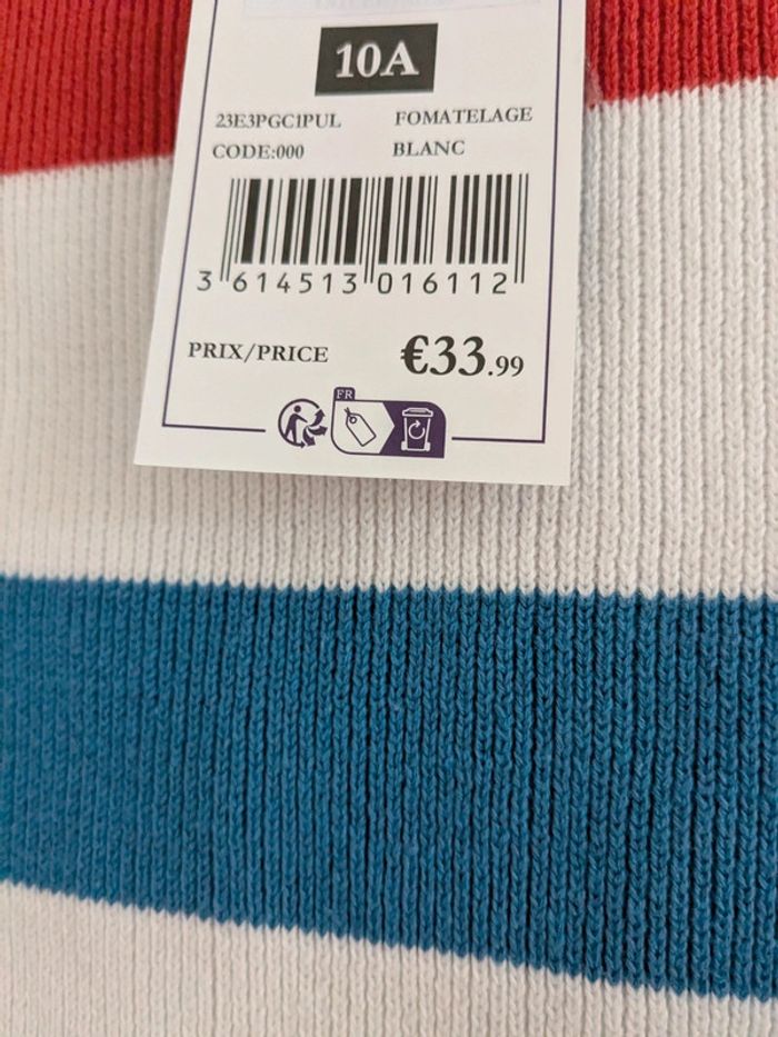 Pull rayé blanc bleu et rouge sergent major 10 ans - photo numéro 5