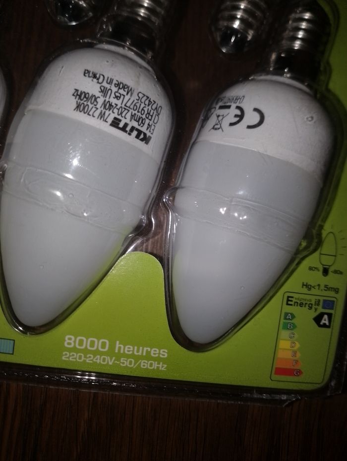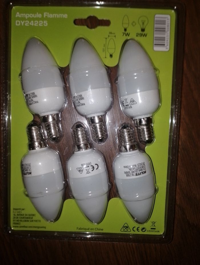 Lot de 6 petites ampoules flamme E14 7w (29w) 290 lumen 2700K 38x 101cm de hauteur