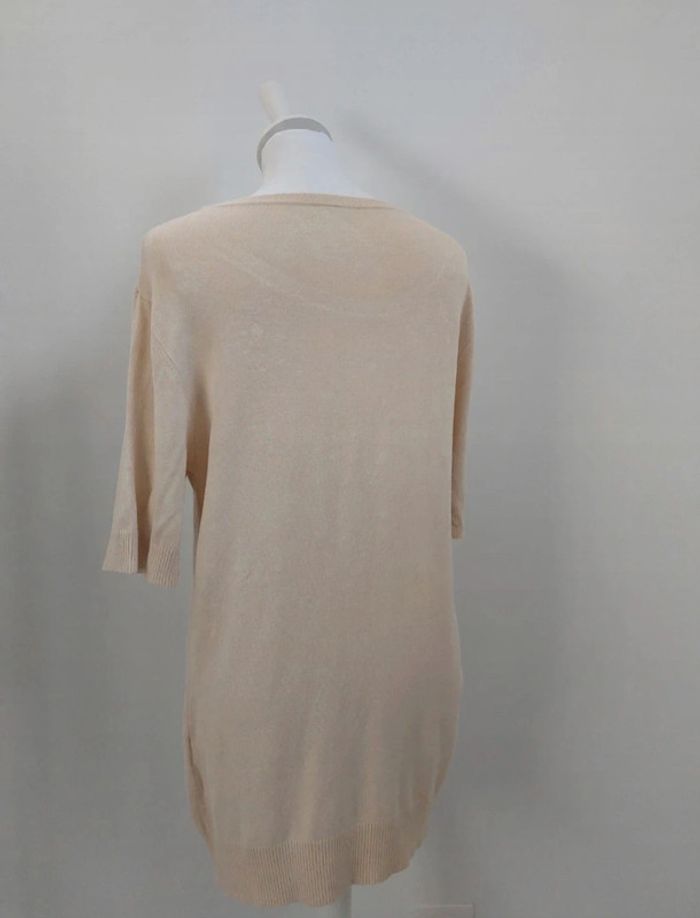 Pull long avec broderies fleurs et perles manches courtes crème femme M 38 - photo numéro 4