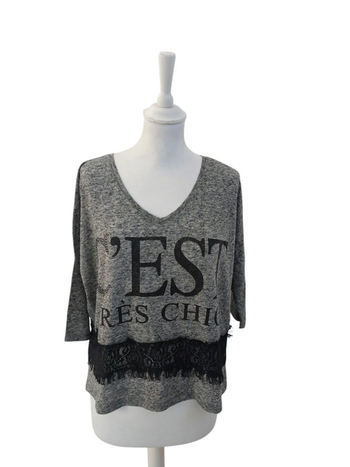 Top manches longues coupe oversize imprimé avec dentelle col v M