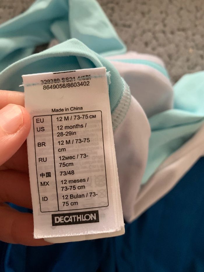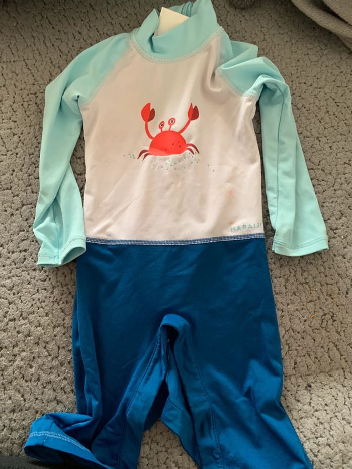 Combinaison, garçon, piscine UV Decathlon, taille 12 18 mois de légère taches devant photo à l’appui
