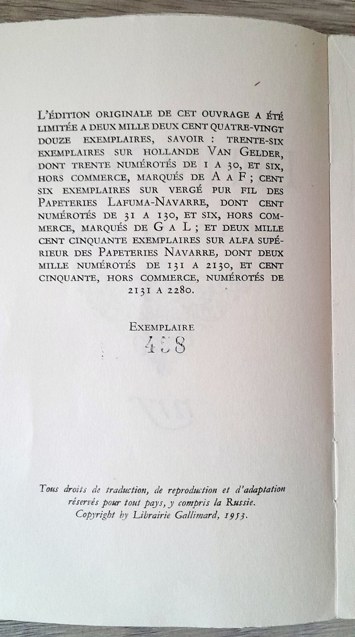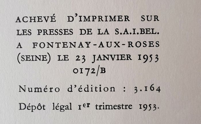 1ère édition 1953 numéroté 16,5x11cm 244 pages