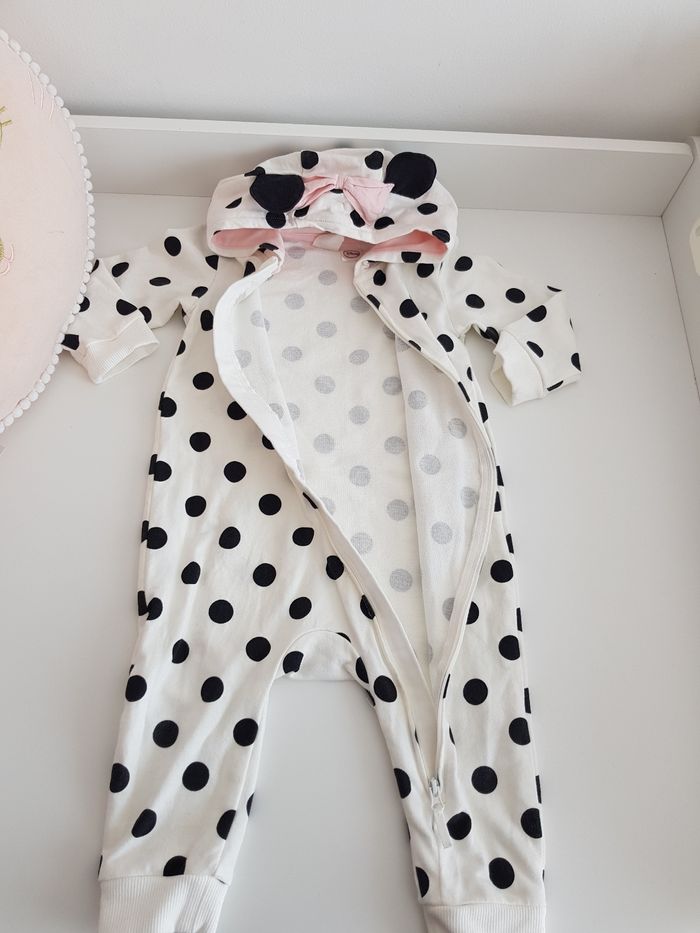 Combinaison sans pieds a capuche Minnie Taille 80 cm de chez H&M Porté 1 fois ou 2 en parfait état Fermeture éclair sur le devant pour l'ouverture Aucuns défauts