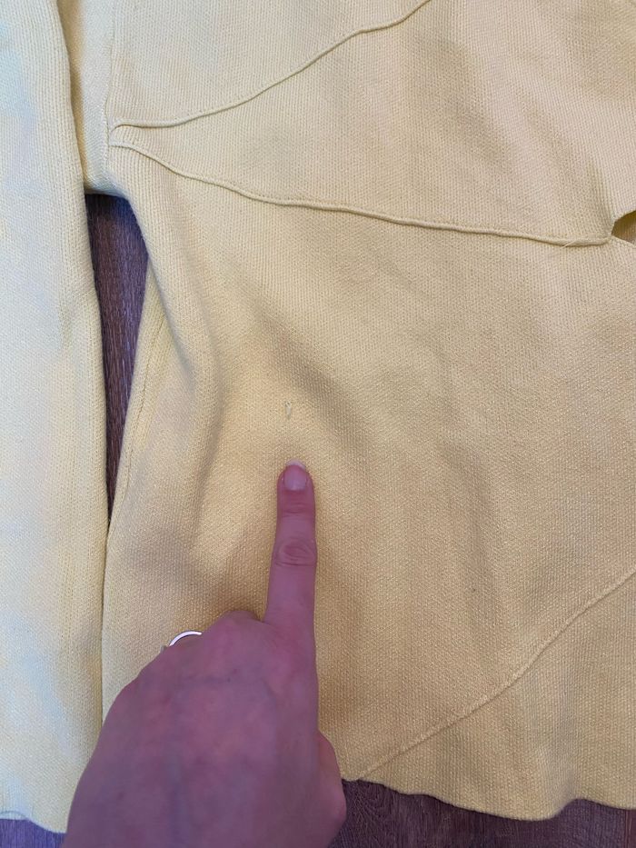 Pull oversize jaune Zara : - Coupe loose ultra confortable et tendance. - Ouverture dans le dos, apportant une touche originale et féminine. - Texture douce et agréable à porter. 📏 Taille : L (coupe ample, convient aussi à un M pour un effet oversize ou un XL un peu plus près du corps). ✅ État : Très bon état, mais une petite maille sortie dans le dos (voir dernière photo). 🎨 Couleur : Jaune lumineux, idéal pour égayer une tenue. La première photo a été prise dehors à la lumière naturelle et la couleur sur celui-ci est la couleur réelle du pull. 🧵 Matière : Mélange de fibres douces et légères en viscose, polyester et nylon. 🚚 Livraison : Envoi rapide et soigné.